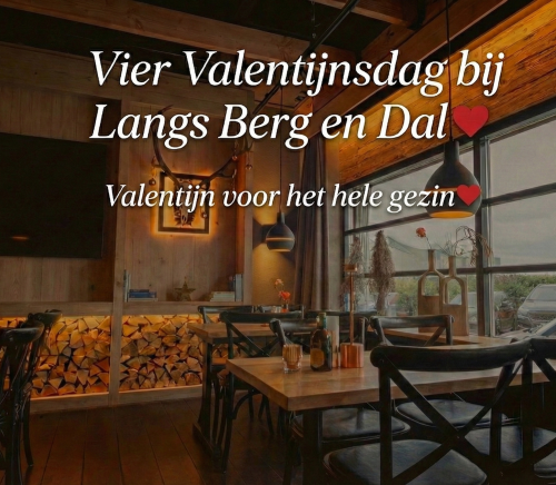 Vier de liefde op Zaterdag 14 februari bij Langs berg en dal. Geen oppas nodig; neem de kinderen gezellig mee! Terwijl zij zich vermaken in de speelhoek, genieten jullie van een sfeervol diner.